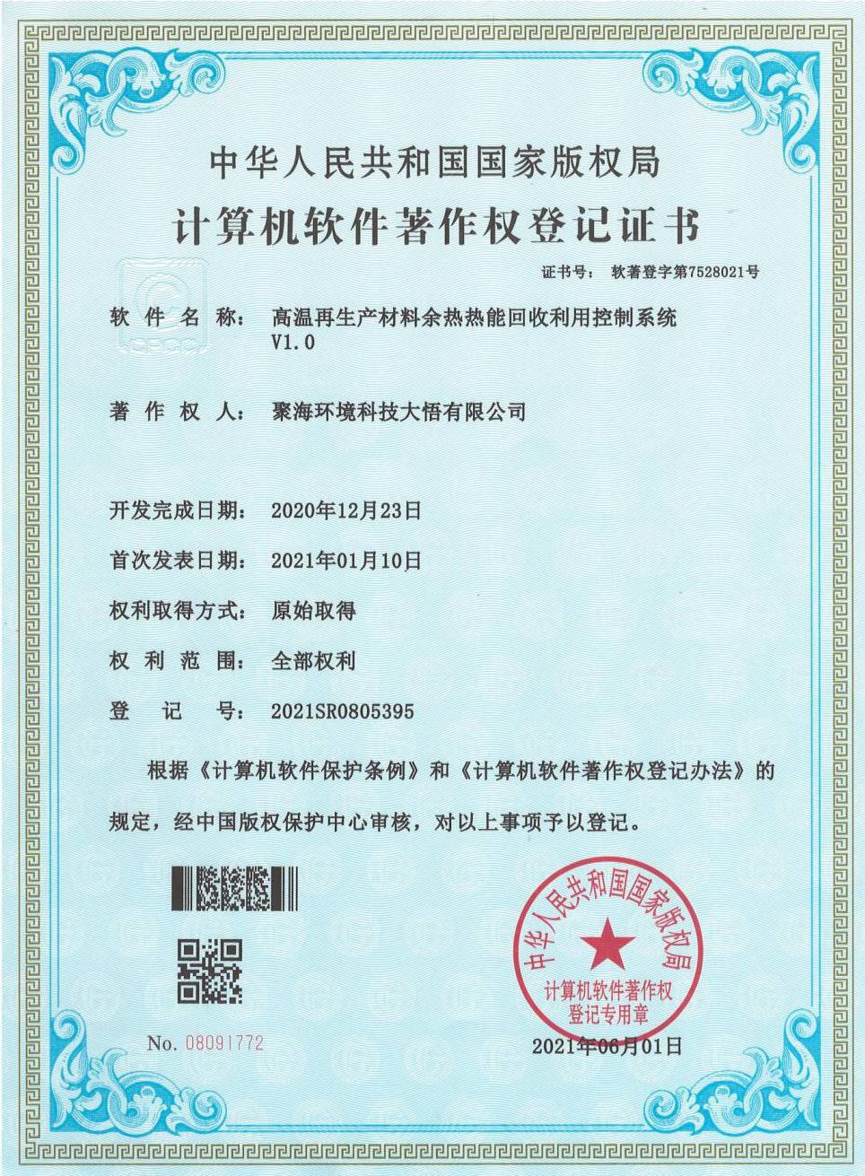 高溫再生產(chǎn)材料余熱熱能回收利用控制系統(tǒng)V1.0