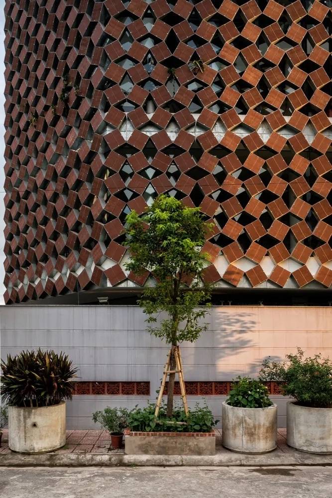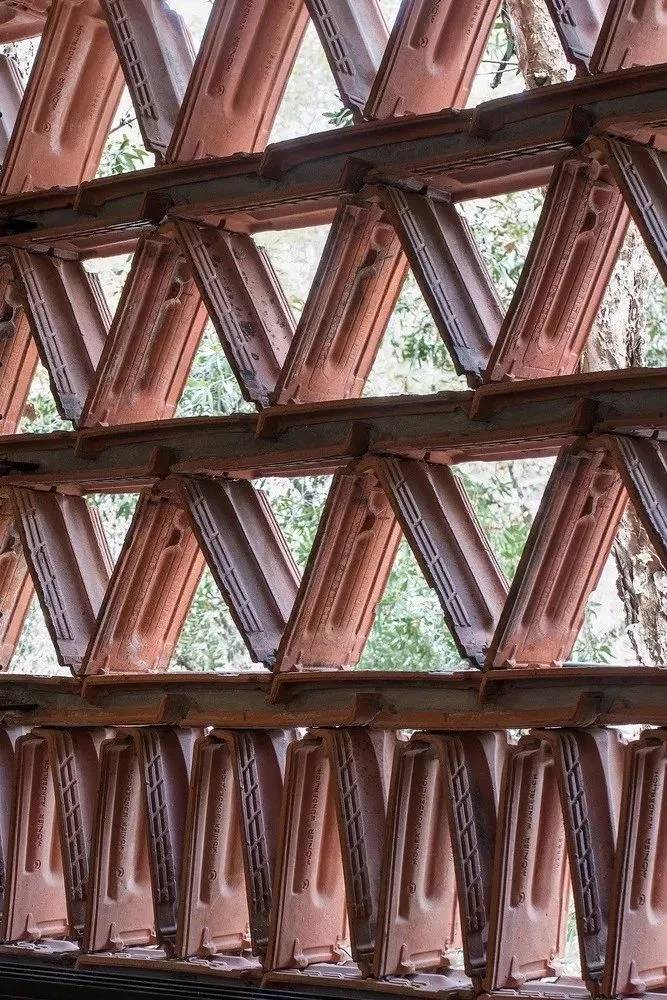 La Colmena項(xiàng)目從廢料場(chǎng)開始研究,尋找合適的目標(biāo),通過遮陽設(shè)施過濾掉主立面強(qiáng)烈的日曬。紅土陶器瓷磚是一個(gè)很容易被忽略的郊區(qū)標(biāo)志,因?yàn)樗苋菀踪徺I,因此沒有足夠的回收市場(chǎng)。除了通用性之外,赤土陶器瓷磚充分展示了原始材料的特性,沒有一種瓷磚與其完全相似,采用粘土鑄造,手工燒制。