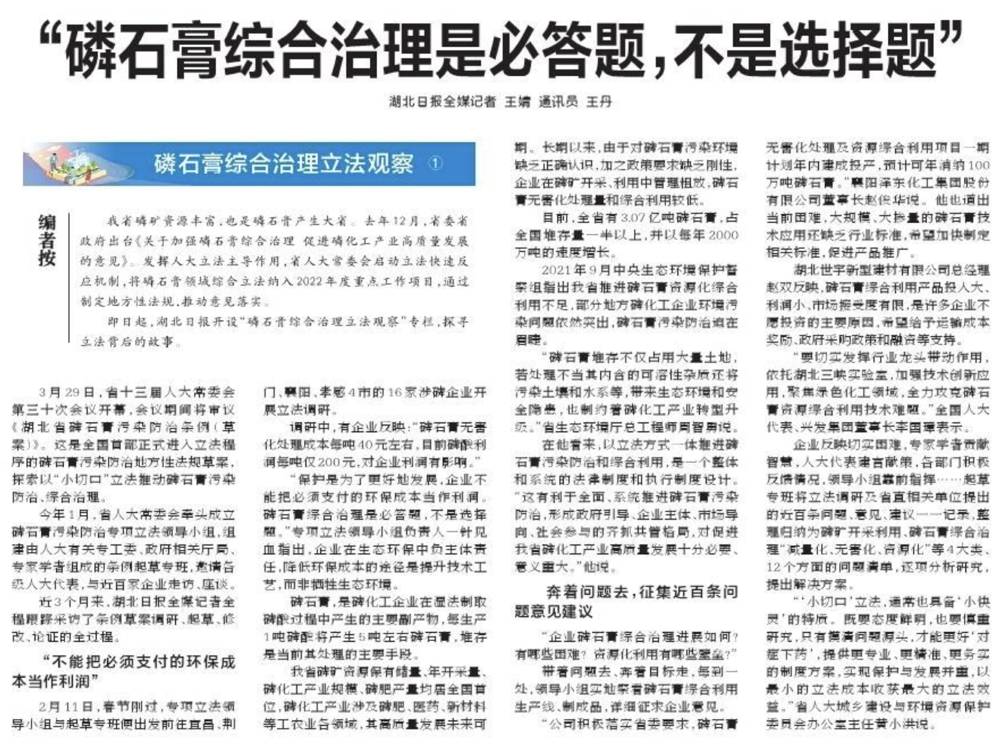 即日起,湖北日報開設(shè)“磷石膏綜合治理立法觀察”專欄,探尋立法背后的故事。