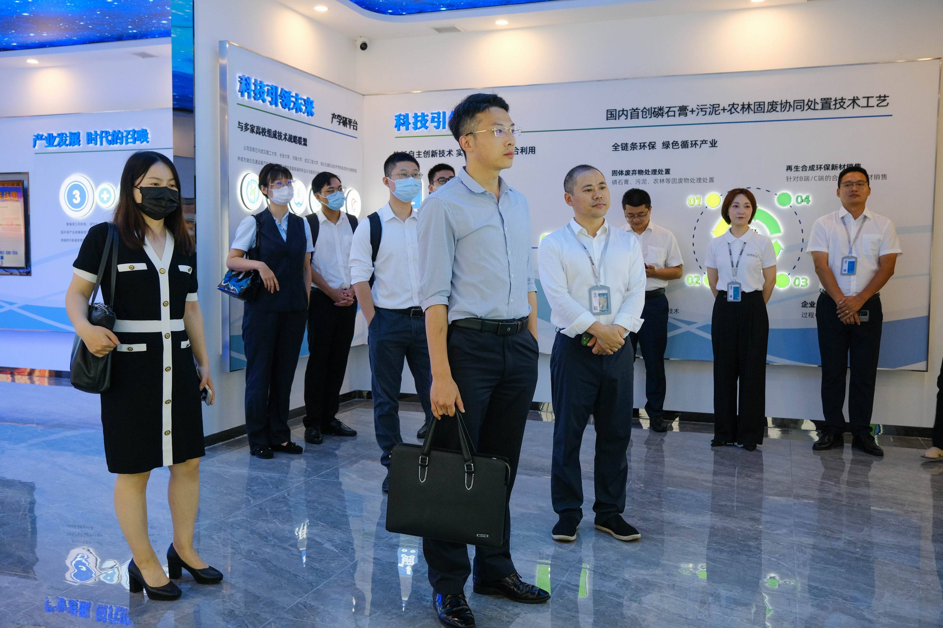 聚海環(huán)境董事長劉志浩對東方證券吳潮一行蒞臨公司指導(dǎo)考察表示歡迎,并陪同參觀了企業(yè)文化展廳、黨建展廳和聚海環(huán)境專利成果展示墻??萍佳邪l(fā)中心負責人胡波詳細介紹了公司的技術(shù)路線、核心產(chǎn)品、市場范圍以及公司發(fā)展規(guī)劃,并表示在固廢處置、資源化利用領(lǐng)域,公司在全面響應(yīng)國家綠色環(huán)保政策號召下,堅持創(chuàng)新驅(qū)動發(fā)展的理念,鞏固企業(yè)創(chuàng)新發(fā)展優(yōu)勢,以提高企業(yè)核心競爭力。