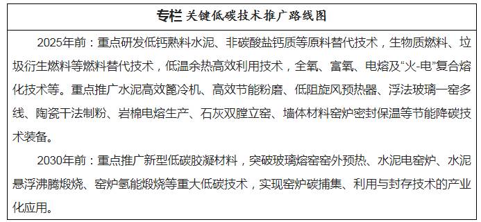 10.加快研發(fā)重大關(guān)鍵低碳技術(shù)。突破水泥懸浮沸騰煅燒、玻璃熔窯窯外預(yù)熱、窯爐氫能煅燒等重大低碳技術(shù)。研發(fā)大型玻璃熔窯大功率“火-電”復(fù)合熔化,以及全氧、富氧、電熔等工業(yè)窯爐節(jié)能降耗技術(shù)。加快突破建材窯爐碳捕集、利用與封存技術(shù),加強(qiáng)與二氧化碳化學(xué)利用、地質(zhì)利用和生物利用產(chǎn)業(yè)鏈的協(xié)同合作,建設(shè)一批標(biāo)桿引領(lǐng)項(xiàng)目。探索開(kāi)展負(fù)排放應(yīng)用可行性研究。加大低溫余熱高效利用技術(shù)研發(fā)推廣力度。加快氣凝膠材料研發(fā)和推廣應(yīng)用。(工業(yè)和信息化部、國(guó)家發(fā)展改革委、科技部、生態(tài)環(huán)境部按職責(zé)分工負(fù)責(zé))