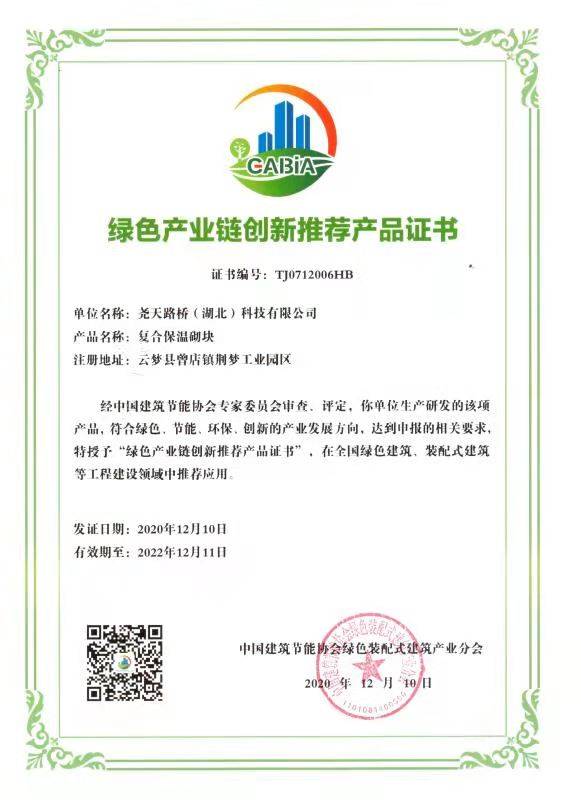 綠色產(chǎn)業(yè)鏈創(chuàng)新推薦產(chǎn)品證書