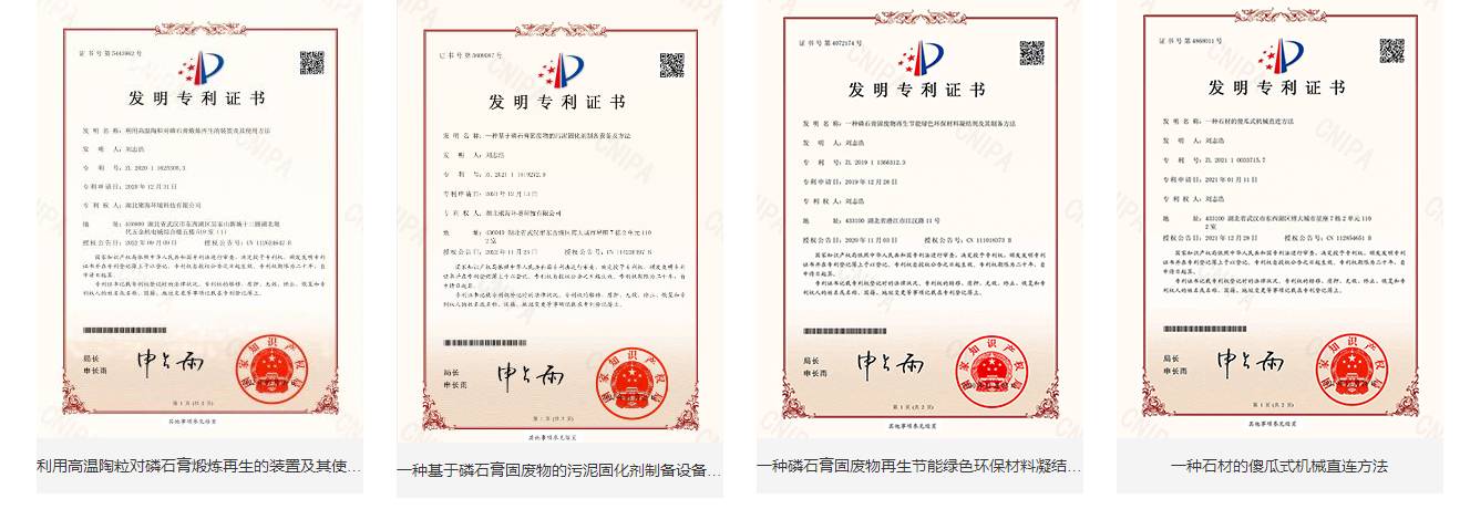 一直以來,聚海環(huán)境對嚴重影響社會生態(tài)環(huán)境的磷石膏、礦山尾礦及礦渣、城鄉(xiāng)污泥、農林等固廢物進行處理處置及綜合利用,經過8年來的自立自強、自主創(chuàng)新研發(fā)并與國內多家專業(yè)高校形成戰(zhàn)略技術聯(lián)盟,有效促進了科技成果轉換,成功打造了固廢物資源化利用開發(fā)的全產業(yè)鏈。截至目前,聚海環(huán)境申報專利共計140余項,獲得知識產權84項,其中國家發(fā)明專利7項,實用新型專利41項,計算機軟著證書36項,申請注冊商標共計146項。