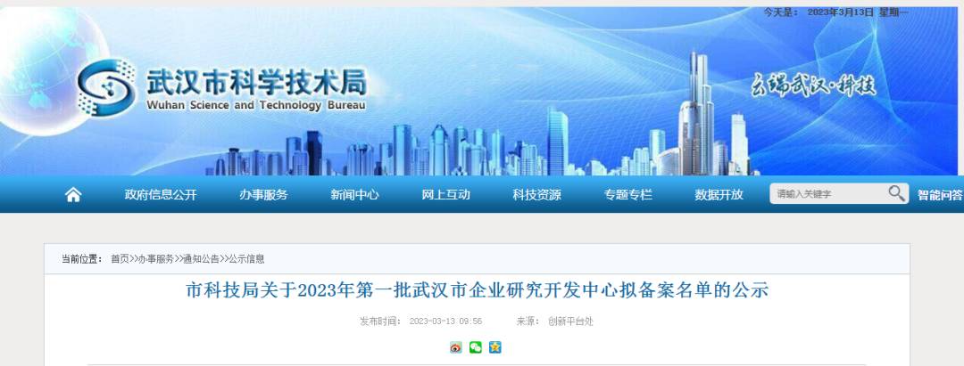 根據(jù)《武漢市企業(yè)研究開發(fā)中心備案管理辦法》(武政規(guī)〔2022〕2號),經(jīng)單位申報、區(qū)科技管理部門審核推薦、抽查復(fù)核、局長辦公會研究等程序,2023年第一批武漢市企業(yè)研究開發(fā)中心擬備案名單將在2023年3月13日至2023年3月17日進(jìn)行公示。