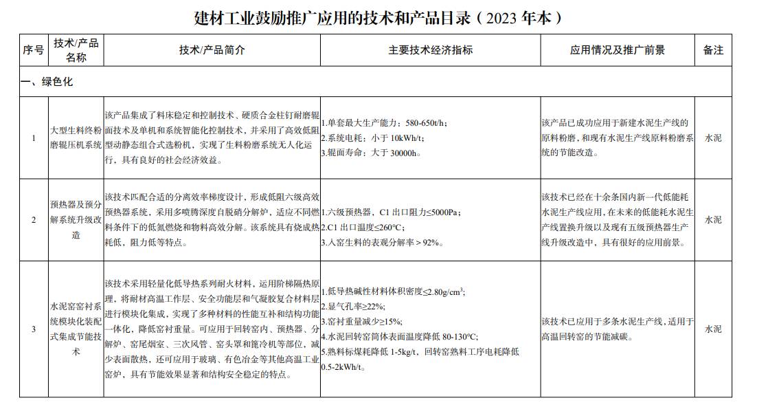 附件:建材工業(yè)鼓勵推廣應(yīng)用的技術(shù)和產(chǎn)品目錄(2023 年本)