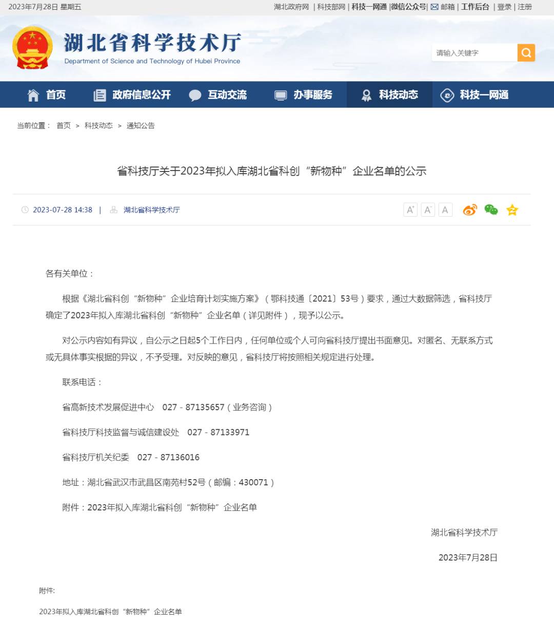 省科技廳關(guān)于2023年擬入庫湖北省科創(chuàng)“新物種”企業(yè)名單的公示