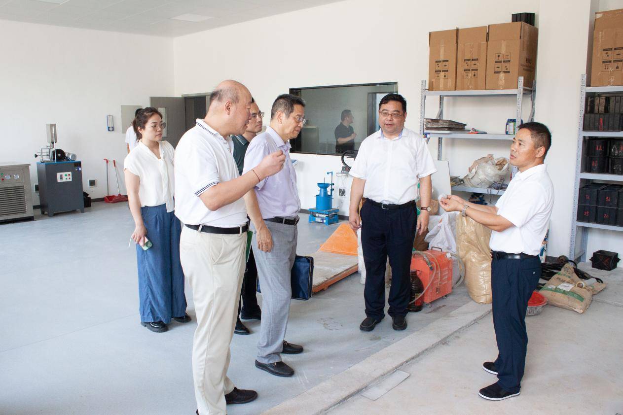 閻忠寧一行人參觀了大悟磷石膏科技產(chǎn)業(yè)園的廠房建設(shè),磷石膏砂漿生產(chǎn)線,科技樓展廳,在產(chǎn)品研究測試實(shí)驗(yàn)室,了解了聚海環(huán)境的綠色建材產(chǎn)品。董事長劉志浩介紹了磷石膏、污泥、農(nóng)林等固廢物的處置工藝技術(shù),以及公司自主創(chuàng)新研發(fā)的磷石膏資源化利用的應(yīng)用場景。