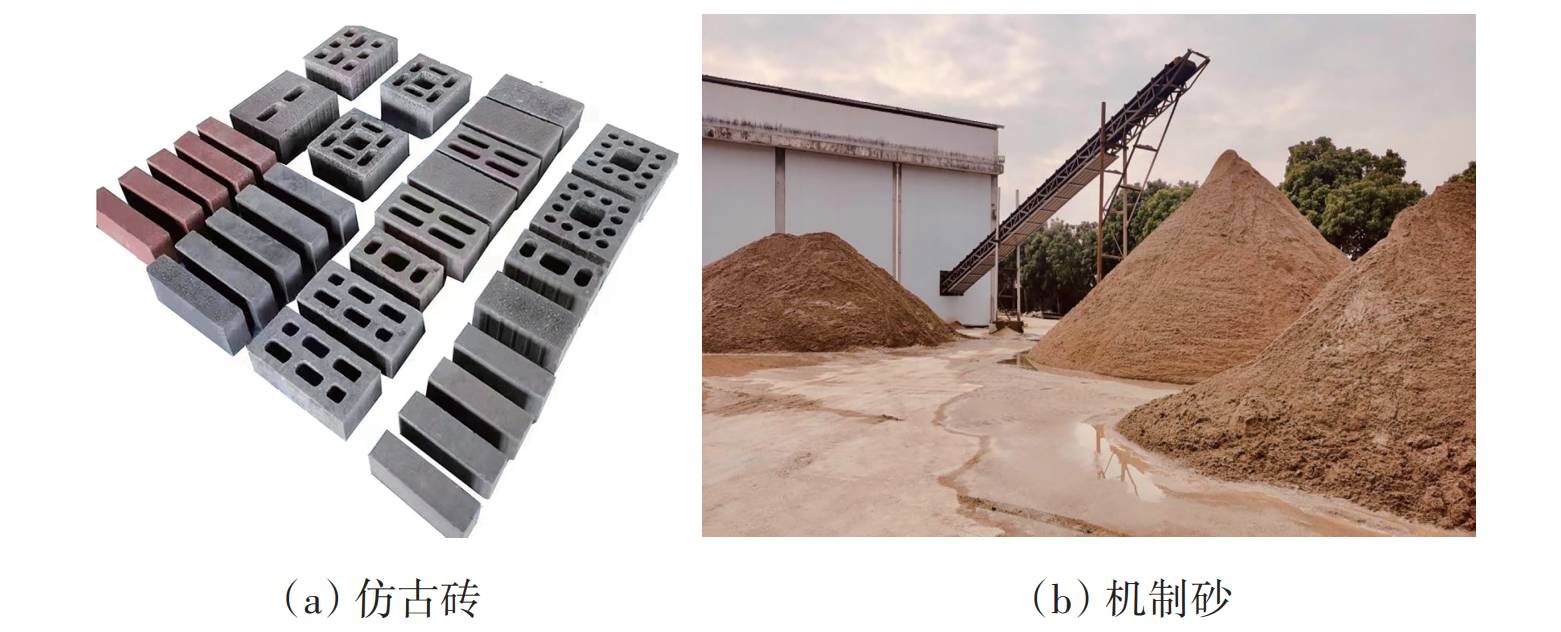 注:仿古磚圖片來源于廈門耕保股份公司提供的宣傳冊;機制砂圖片為中旭制勝(廈門)節(jié)能科技有限公司鐘旭航于2022年5月11日在現(xiàn)場拍攝。
