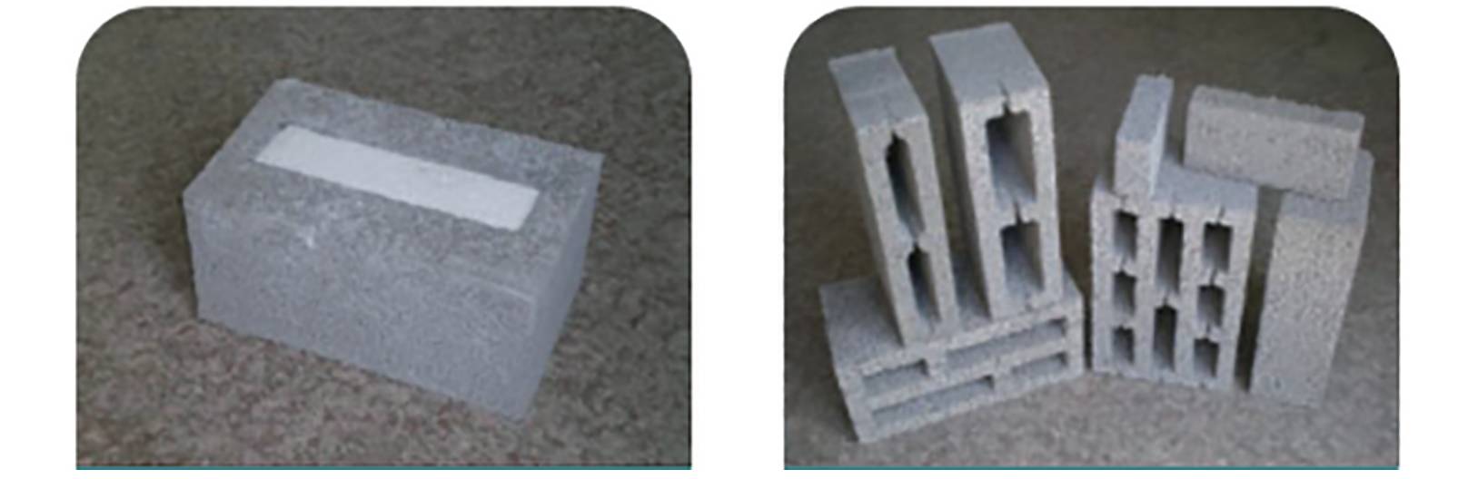 在我國沿海地區(qū),由于軟土地基和黏土資源的缺乏,廢棄泥漿經(jīng)固化處理后用作路基土回填和制磚的資源化路線較多,燒制陶粒則相對較少。寧波市泥漿資源化生產(chǎn)固化土及陶粒制品如圖4和圖5所示。圖5中自保溫陶?;炷翉秃掀鰤K干密度為900~1200kg/m³,強度等級為MU5.0~7.5,圖示砌塊長×寬×高為390mm×290mm×190mm;輕集料(陶粒)混凝土小型砌塊干密度為900~1200kg/m³,強度等級為MU3.5~7.5,圖示砌塊長×寬×高為390mm×240mm×190mm。