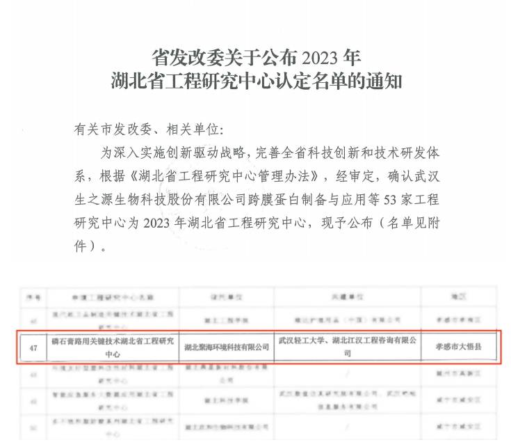 11月22日,省發(fā)展和改革委員會公布2023年全省53家工程研究中心認定名單,以湖北聚海環(huán)境科技有限公司為依托單位,與武漢輕工大學、湖北江漢工程咨詢有限公司共建的“磷石膏路用關鍵技術湖北省工程研究中心”名列其中。這是全省首個以磷石膏路用關鍵技術為研究方向的工程中心,也是大悟縣首個省工程研究中心。