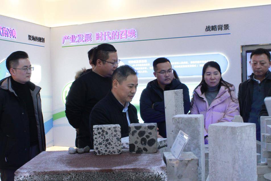 聚海環(huán)境對“同心行”小組成員的到來表示熱烈歡迎,劉總?cè)?/font>陪同“同心行”小組成員參觀聚海環(huán)境總部科技展示中心,詳細(xì)介紹了企業(yè)的發(fā)展歷程、技術(shù)成果和產(chǎn)品樣品,演示了公司綠色建材產(chǎn)品防火、保溫、隔音的特性,介紹了公司自主創(chuàng)新研發(fā)的磷石膏資源化利用的應(yīng)用場景。