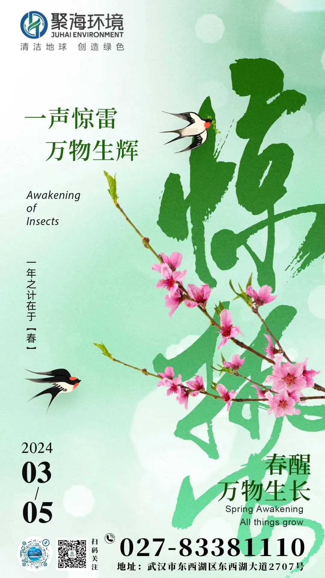 驚蟄時(shí)節(jié),春風(fēng)送暖,陽(yáng)光明媚。我們聚海環(huán)境,愿大家在這個(gè)美好的季節(jié)里,掃盡一切陰霾,讓生活充滿陽(yáng)光和希望。讓我們一起迎接春天的覺醒,享受大自然帶來(lái)的美好。