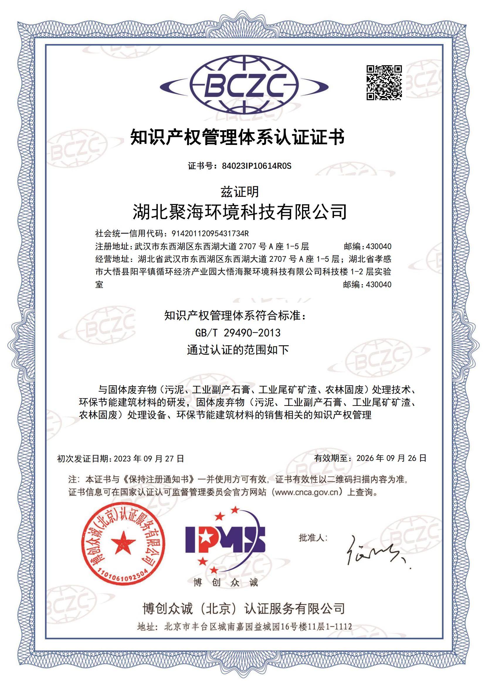 知識產(chǎn)權(quán)管理體系認(rèn)證證書