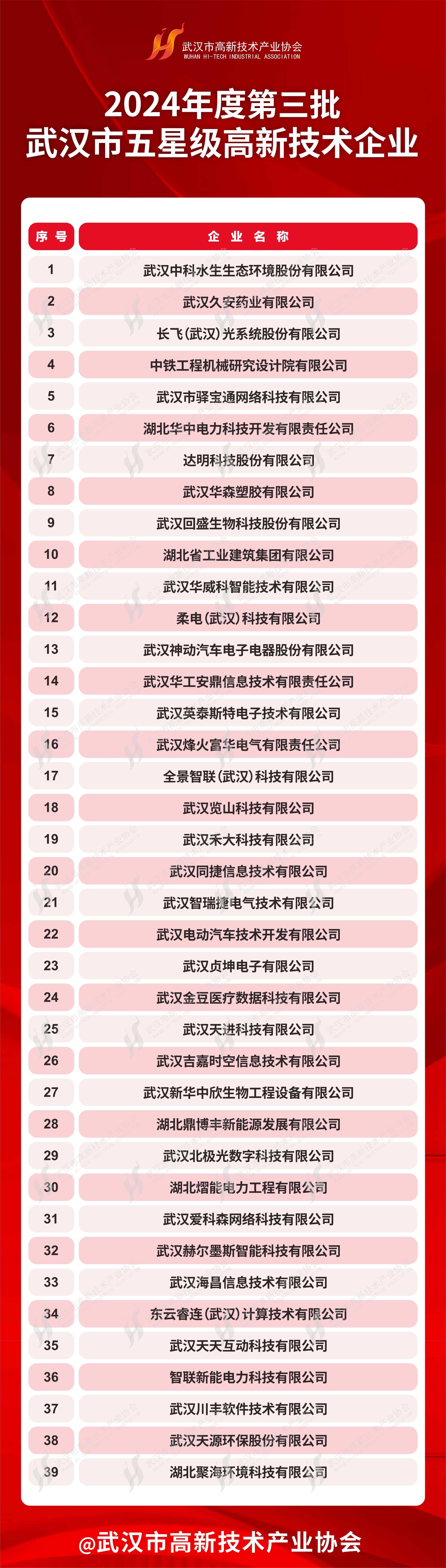 附件:2024年度第三批武漢市五星級高新技術企業(yè)名單