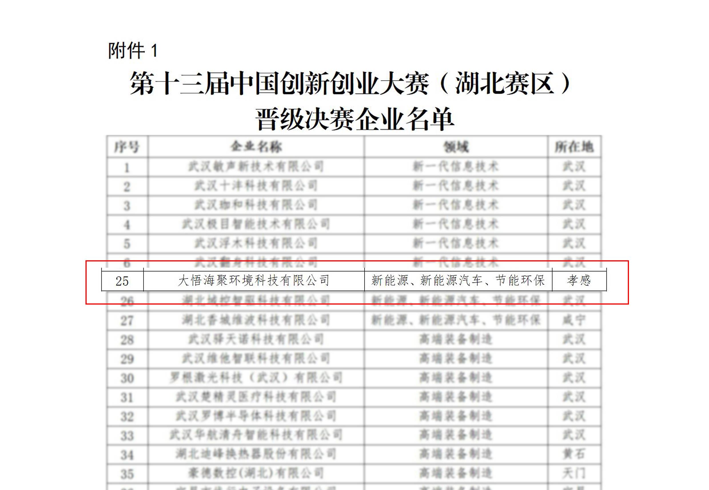 近日,大悟海聚環(huán)境科技有限公司經(jīng)過(guò)在第十三屆中國(guó)創(chuàng)新創(chuàng)業(yè)大賽(湖北賽區(qū))中,經(jīng)過(guò)市州賽、半決賽一路過(guò)關(guān)斬將,成功晉級(jí)決賽!